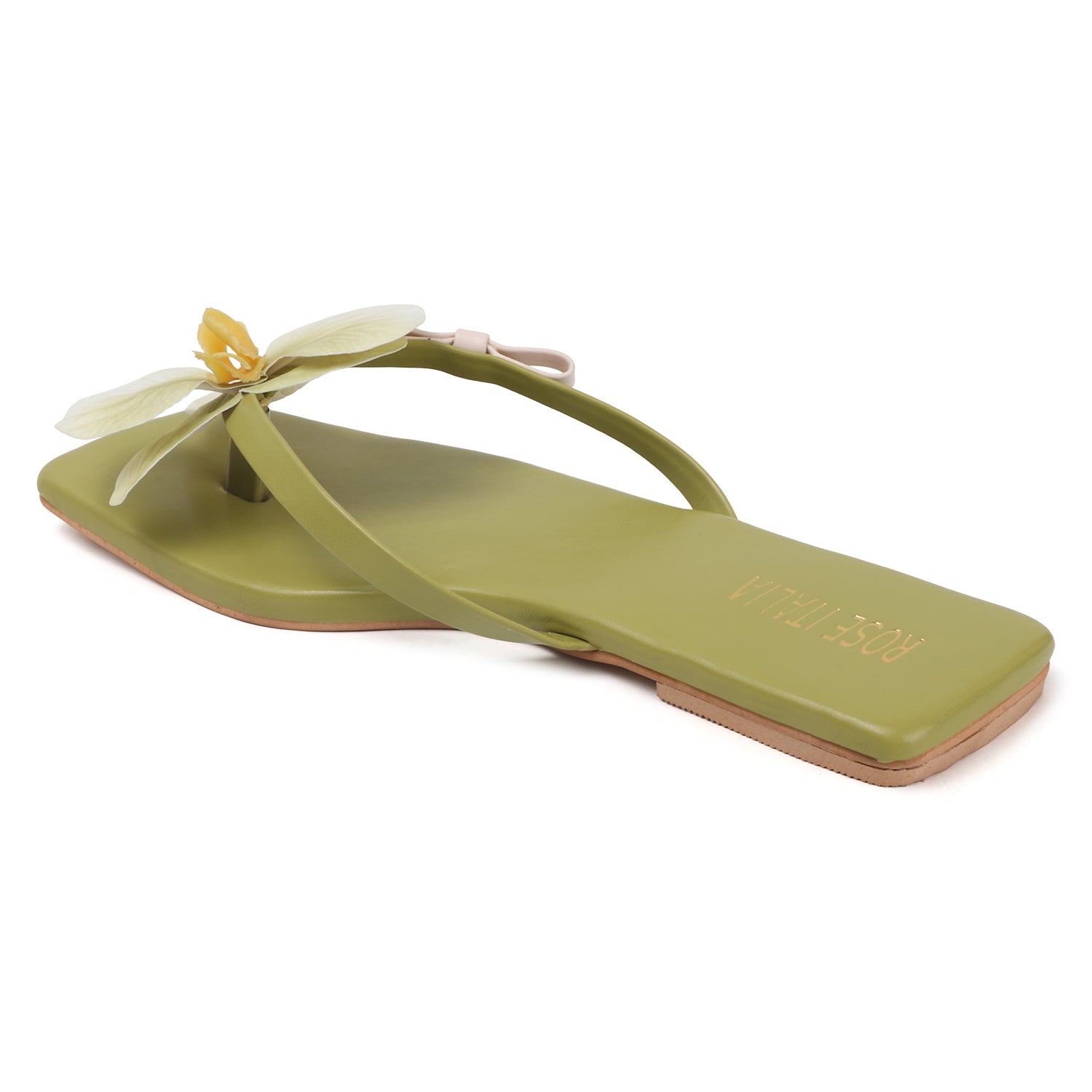Make a fresh statement with these square-toe slippers, featuring delicate straps and a stunning lifelike orchid accent with a vibrant center. A perfect blend of nature-inspired beauty and modern minimalism for chic summer looks