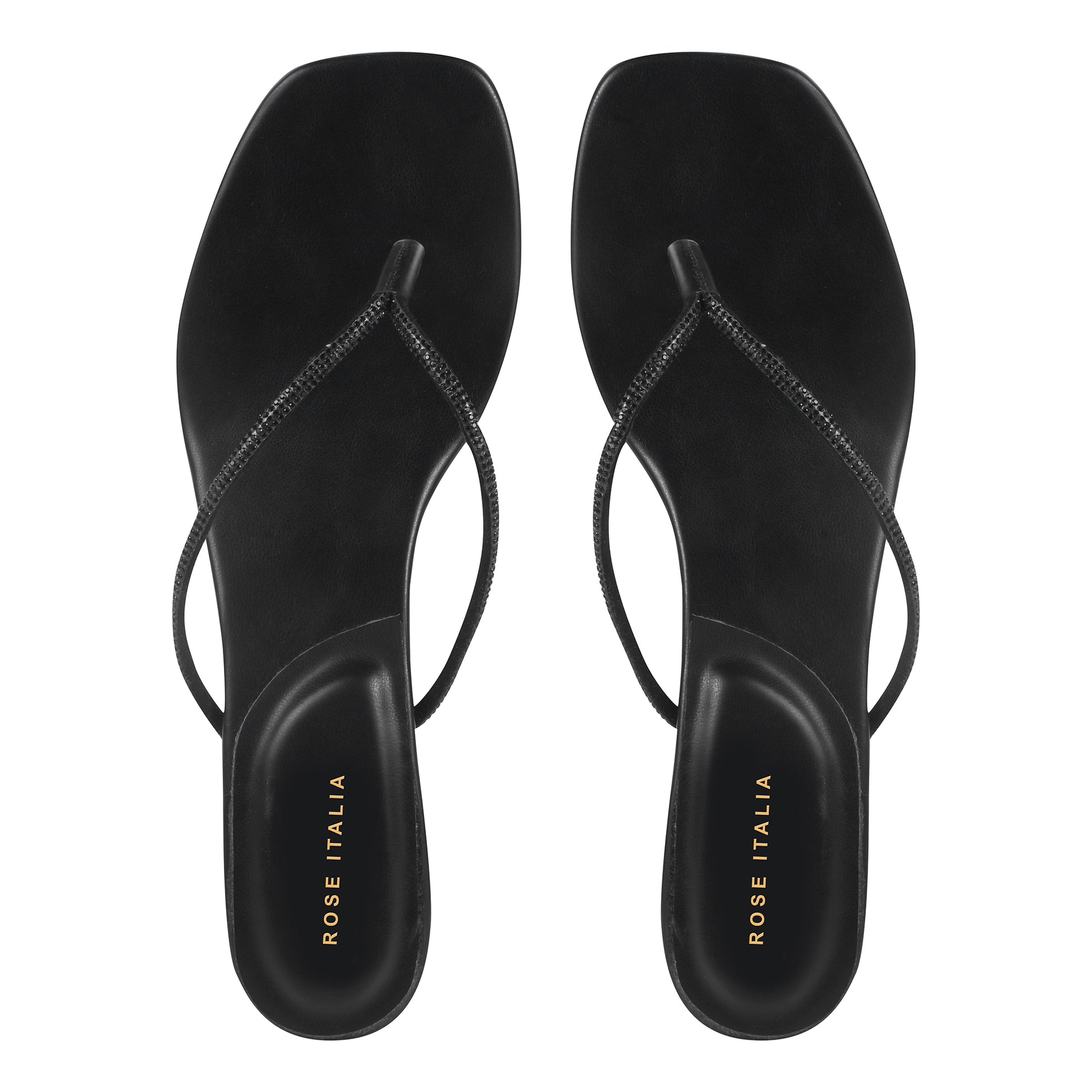 Designed with a sleek square toe, slender thong straps, and a comfortable mid-heel, this style perfectly blends minimalism with sophistication. The versatile finish makes them a timeless staple, ideal for both day and night looks. Whether paired with casual denim or a glamorous dress, these sandals add a touch of modern refinement to any outfit