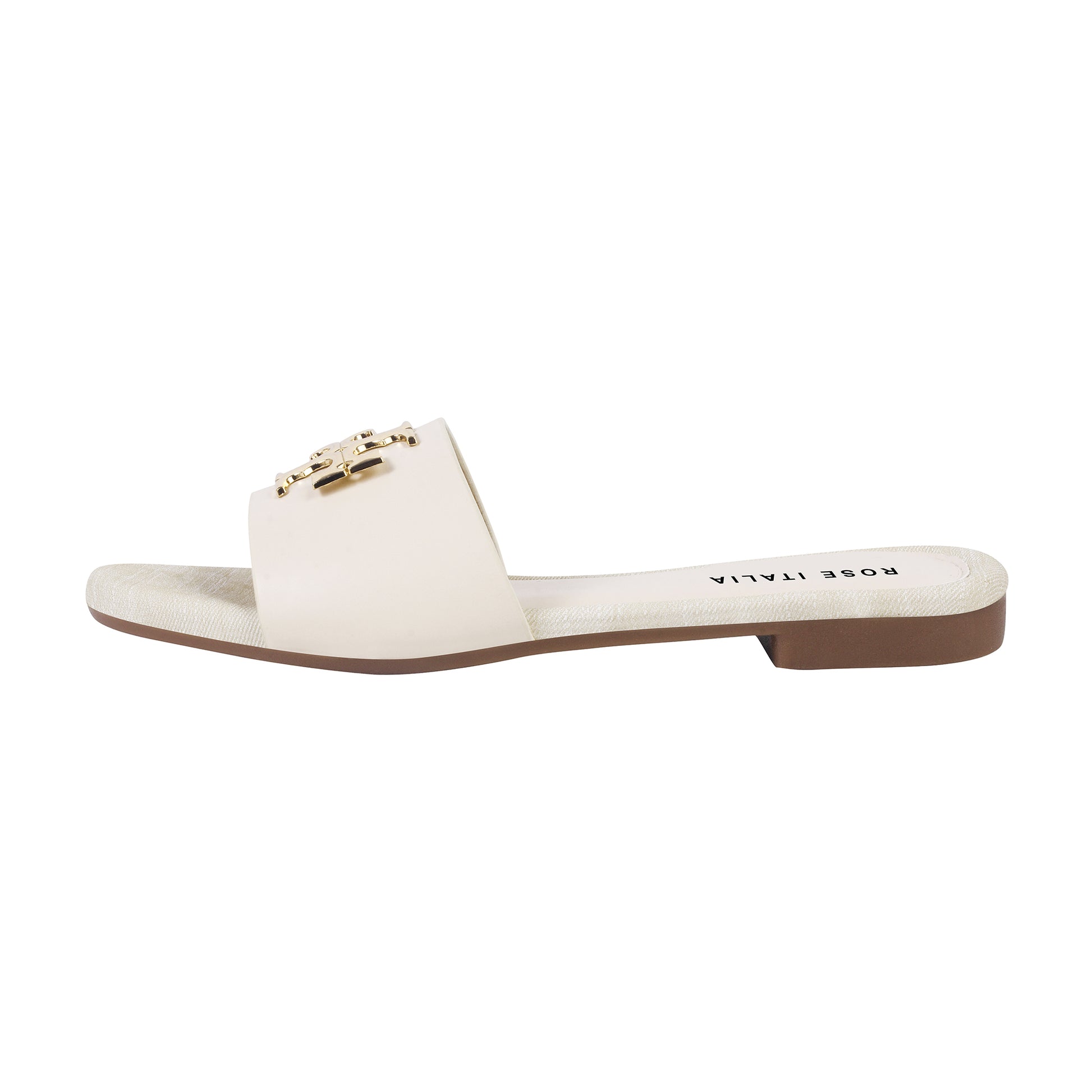 A wide strap adorned with a bold metallic emblem, this design combines minimalism with a touch of luxe. The sleek silhouette and cushioned footbed ensure all-day comfort, making them the perfect choice for casual outings, vacations, or elevating your off-duty looks. A versatile essential that pairs seamlessly with both western and ethnic wear.