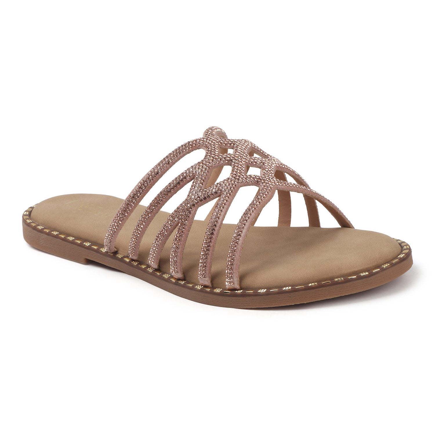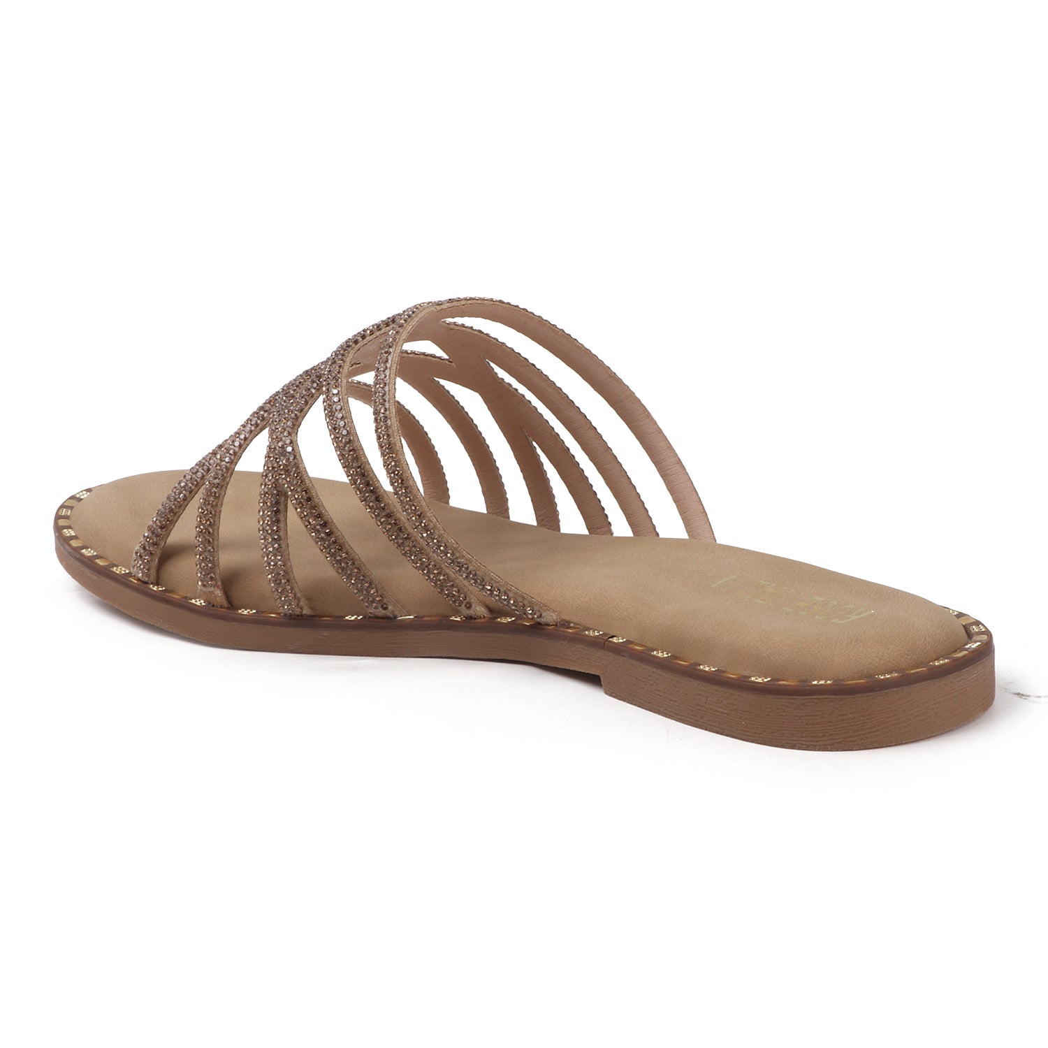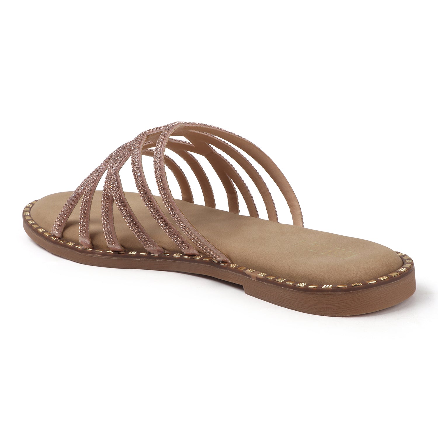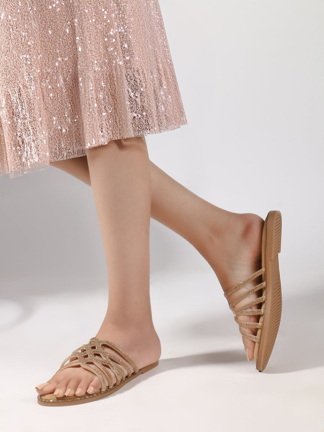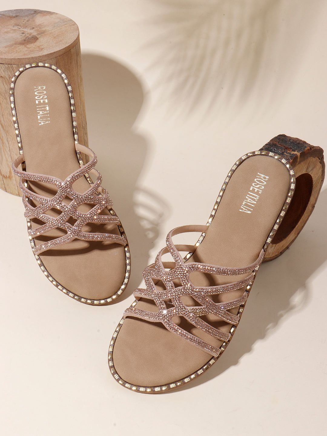 Featuring a delicately woven strap design embellished with fine shimmering stones, it blends sophistication with modern style. The soft cushioned base ensures comfort for all-day wear, while the studded border detail adds a luxe finishing touch. Perfect for parties, festive occasions, or simply adding sparkle to your casual look